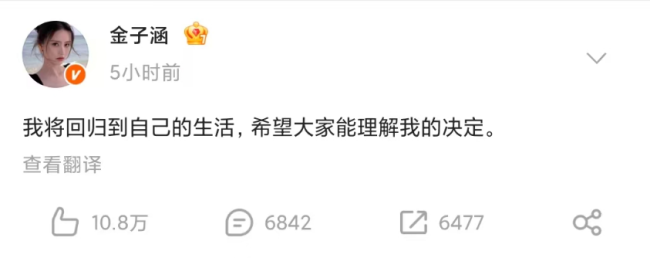 一句“我将回归到自己的生活,希望大家能理解我的决定”引发全网关注。