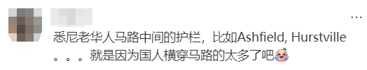 “悉尼老华人区马路中间的护栏,比如Ashfield, Hurstville…就是因为国人横穿马路的太多了吧。”