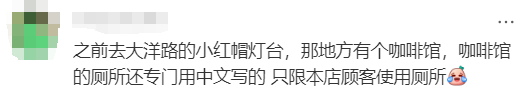 “之前去大洋路的小红帽灯台,那地方有个咖啡馆,咖啡馆的厕所还专门用中文写的‘只限本店顾客使用厕所’。”