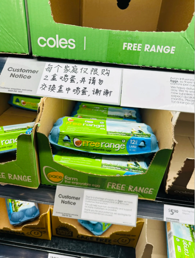 配图Coles鸡蛋商品栏前面的中文提醒: